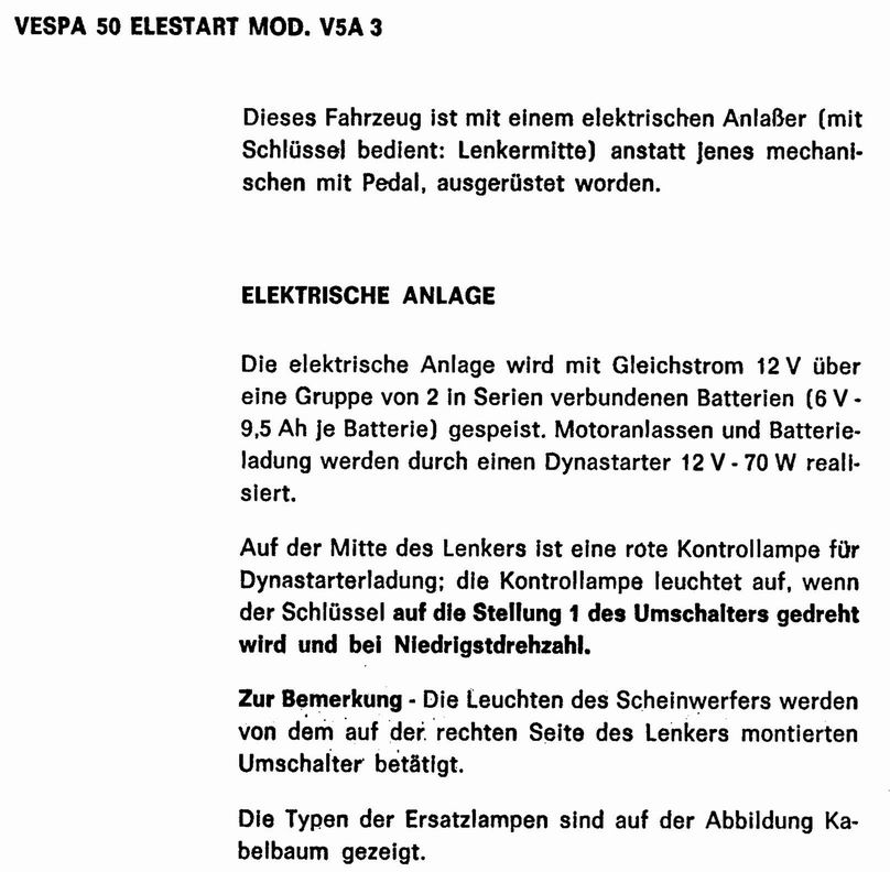 Vespa 50 Elestart, V5A3T, Hupe, kein Bremslicht